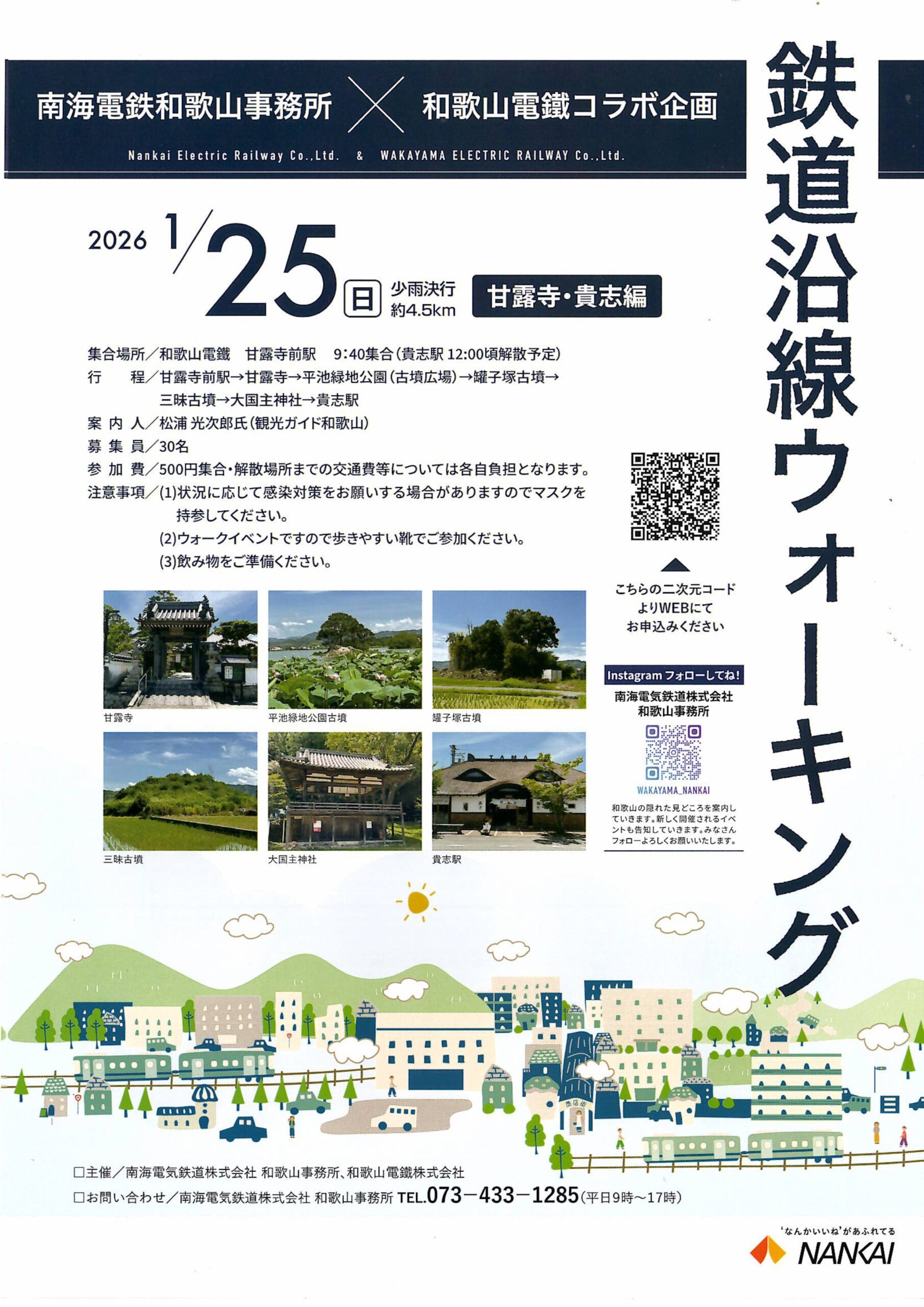 和歌山南スマートインターチェンジおよびアクセス道路(県道)が2019年3月10日(日)に開通することに先立ち、開通記念として下記のとおりウォークイベントが開催されます。