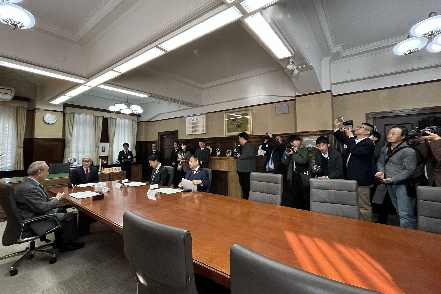 ニタマ駅長も11月20日に天寿を全うし、待ちに待ったこの調印式が決まったことを“たま大明神”に報告に旅立ちました。今日の合意書の署名はニタマ駅長のボールペンで皆さん揃ってサインをさせていただきました。ニタマ駅長の功績に報いる供養になったと思います。