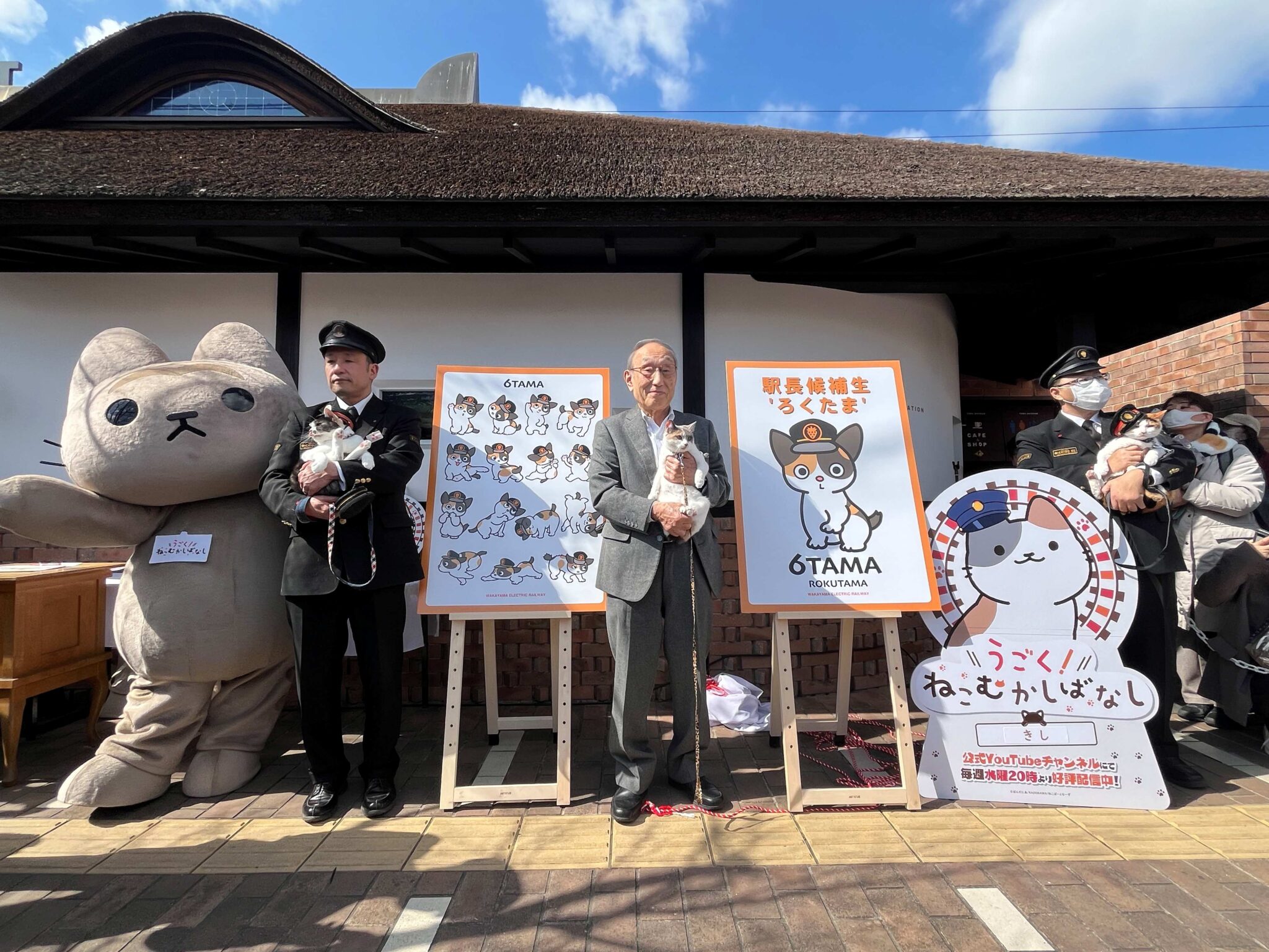 ヒントは、ニタマ譲りの「おキャンな女の子」ということだけ。今日は猫駅長たちが勢揃いし、賑やかに記念日をお祝いしました。